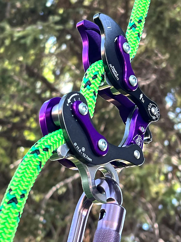 アキンボ2はツリーワーカー向けに開発されたロープ中間取り付け型クライミングデバイスの第2世代モデルです。
