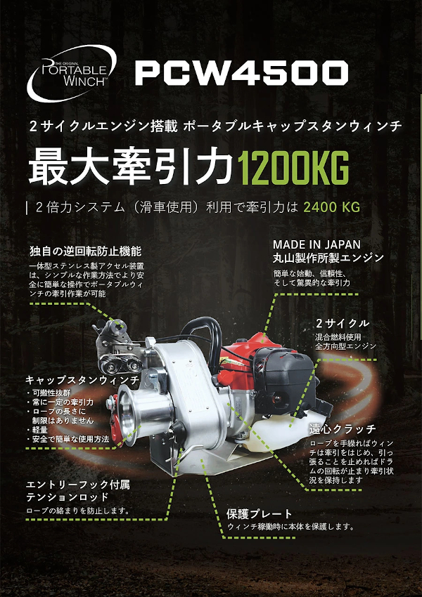 PCW4500はポータブルウィンチ社が初めてリリースする2サイクルエンジン搭載モデルです。
