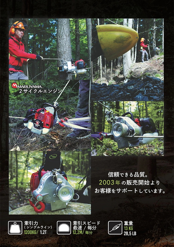 牽引力はポータブルウィンチシリーズ最大の1.2t(シングルライン)。