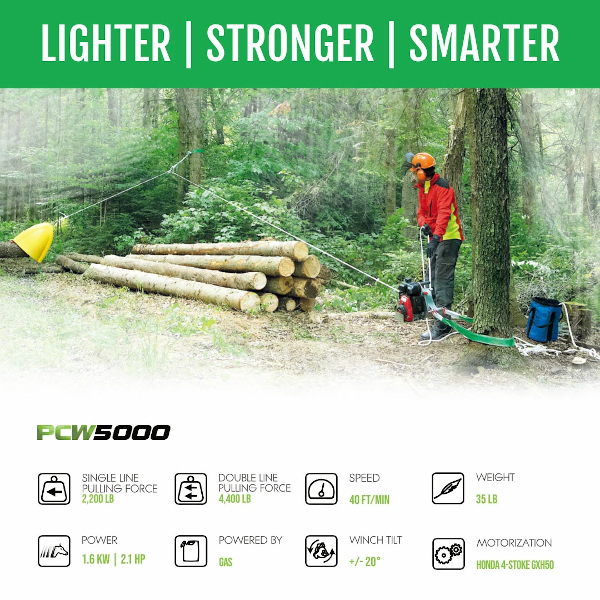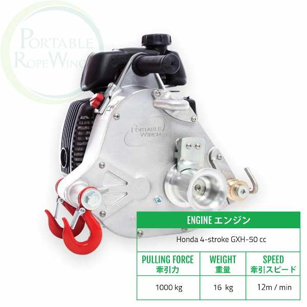 4サイクル ホンダ GXH-50cc エンジンを搭載したポータブルロープウィンチ。