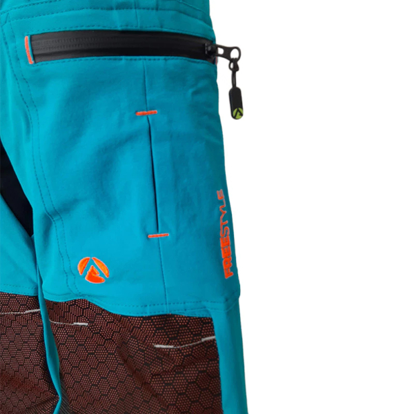 ・デザイン A (脚の前部のみチェンソー保護) チェンソープロテクションはクラス 1 (20 m/s) に評価されています。