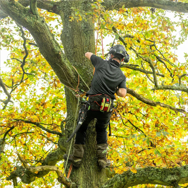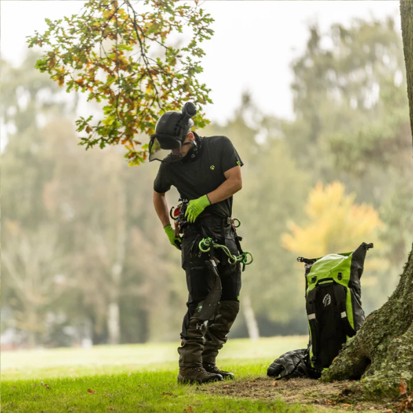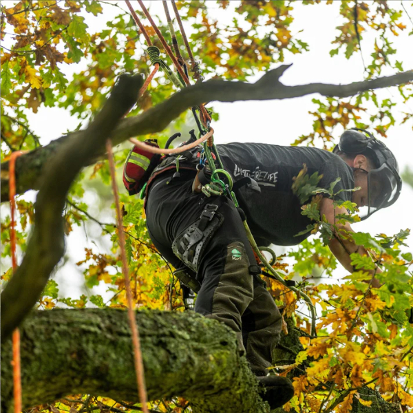 高強度ポリマーを使用したこのズボンは体をしっかりと保護しながらも、現場や樹冠の周囲を楽に移動するのに必要な柔軟性を確保しています。