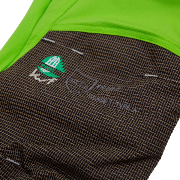 ・デザイン A (脚の前部のみチェンソー保護) チェンソープロテクションはクラス 1 (20 m/s) に評価されています。