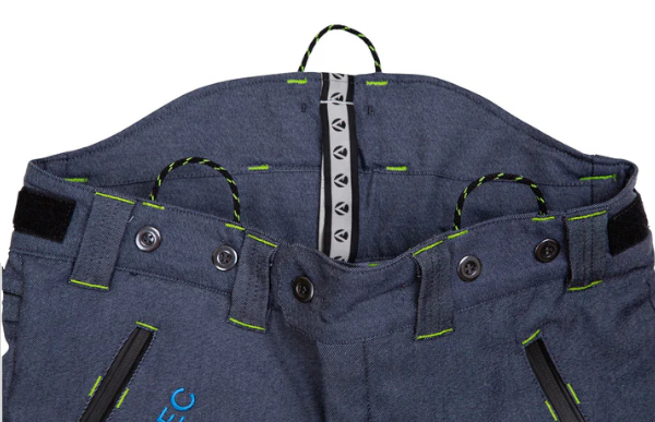 高強度ポリマーを使用したこのズボンは体をしっかりと保護しながらも、現場や樹冠の周囲を楽に移動するのに必要な柔軟性を確保しています。